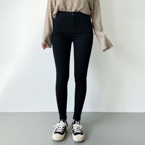 [셀럽하우스]반시아 XTKK4964 기모 블랙 스키니 팬츠 -221220