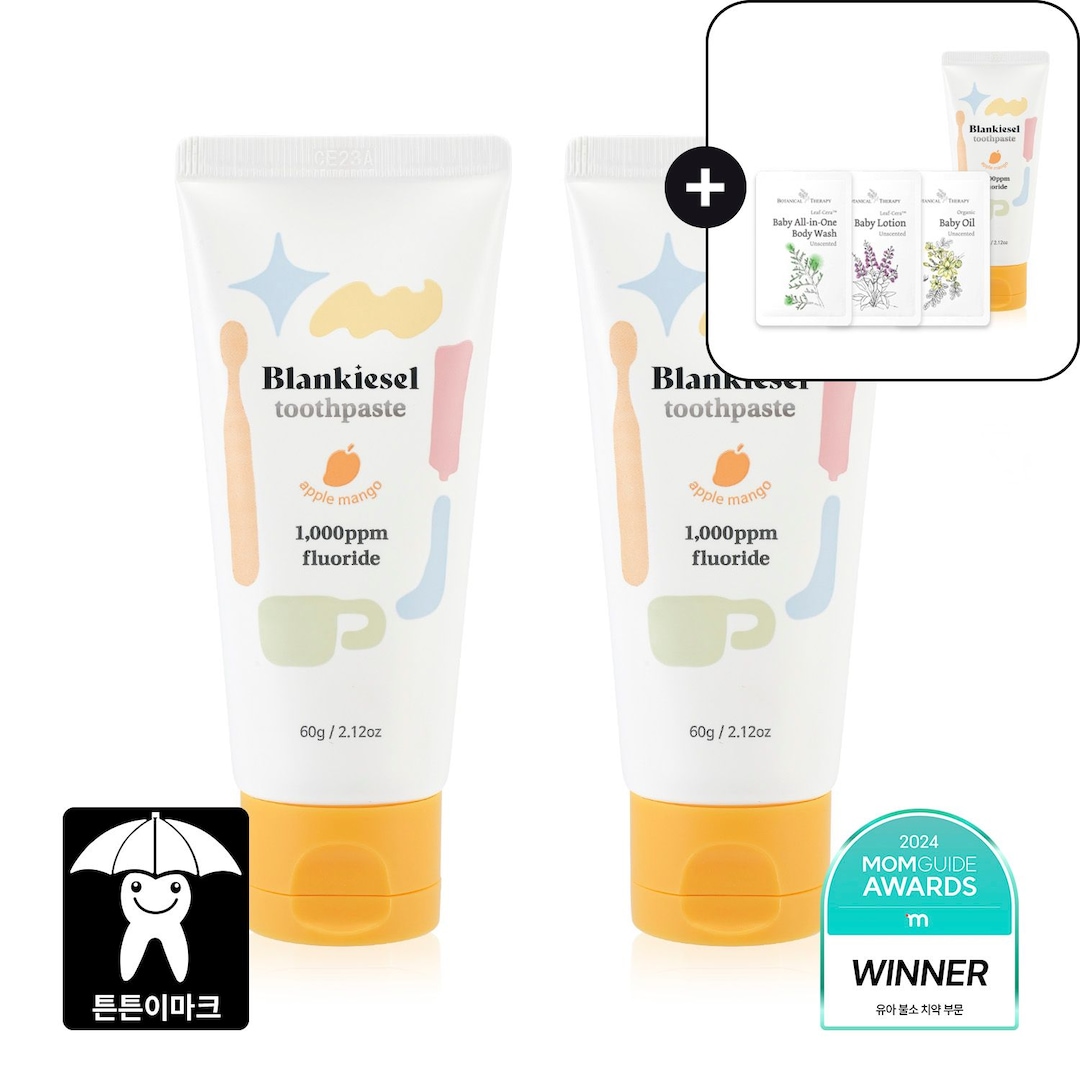 [블랑키즐] 치약 아기 어린이 유아 고불소 애플망고향 60g 1+1