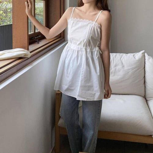 셔츠 끈 원피스 휴양지 리본 캉캉 어깨 데님 WFKOIOH