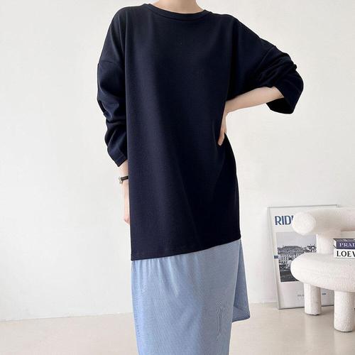 샵앤) 국산 배색 셔츠카라 오버핏 임부 롱원피스 LL-WDR-4847-블랙