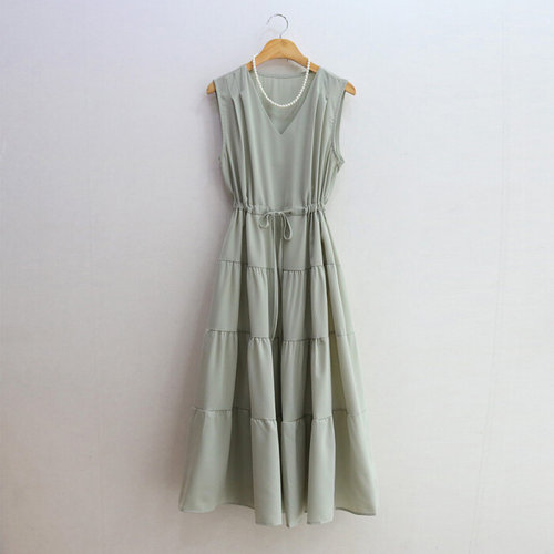 레이츄 / 몰리 허리 스트링 여름 브이넥 나시 롱 원피스