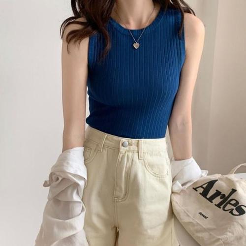 기본 반목 나시 무지티셔츠 여성 반목 티셔츠 슬리브리스 여름