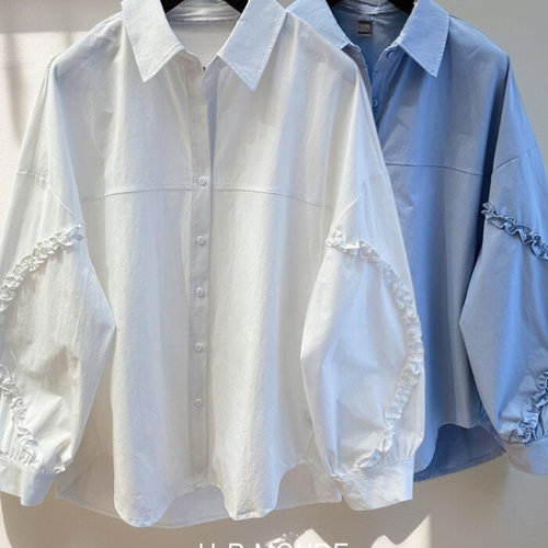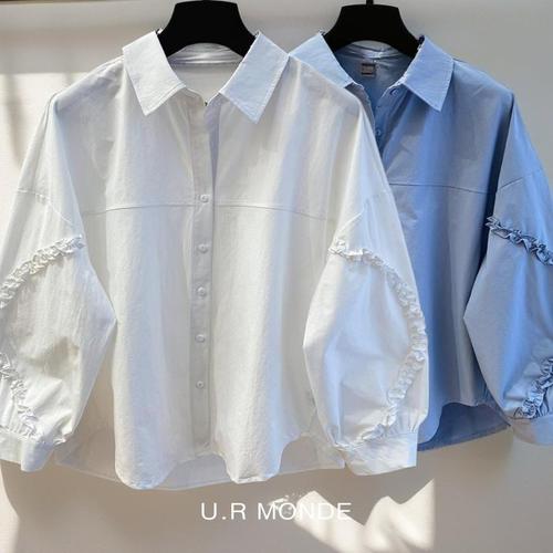 [JHP29RST_51IB]흰색블라우스 레이스 프릴 큐티셔츠