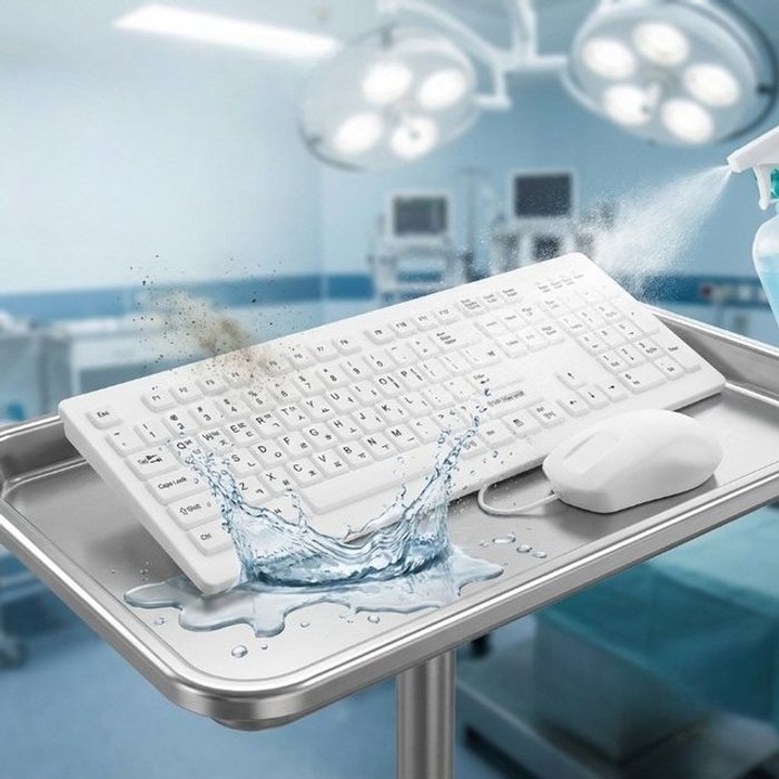 KSI 메디컬 병원 의료용 방수 실리콘 먼지 액체 방지 키보드마우스 세트
