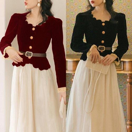 프렌치 경성드레스 긴팔 복고의상대여 투피스 복 WFLQB1U