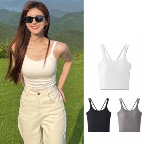 [셀러허브_여성트랜드패션]두줄 이너 브라렛 캡나시 끈 크롭 민소매 티셔츠 나시