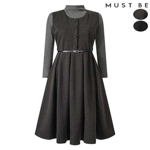 [머스트비]여성 이너세트 벨티드 라운드 원피스