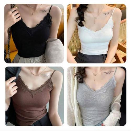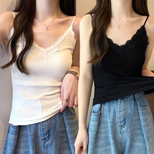 [셀러허브_여성트랜드패션]여자 민소매 레이스 이너 끈나시 나시 캡내장 V넥