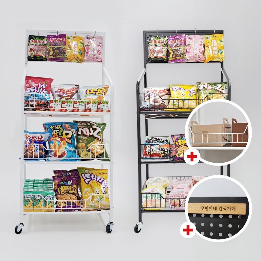 이동식 스낵 선반+(각인) 우드마그넷+펠트바구니 무료증정 편의점 팬트리 트롤리 간식 수납장