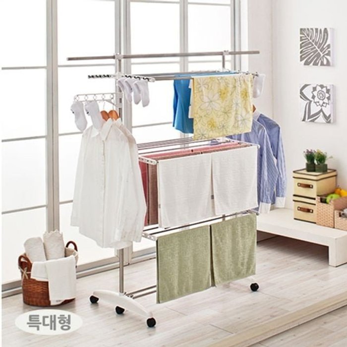 2단 특대형 이동식 접이식 수건 이불 튼튼한 빨래 건조대 확장형