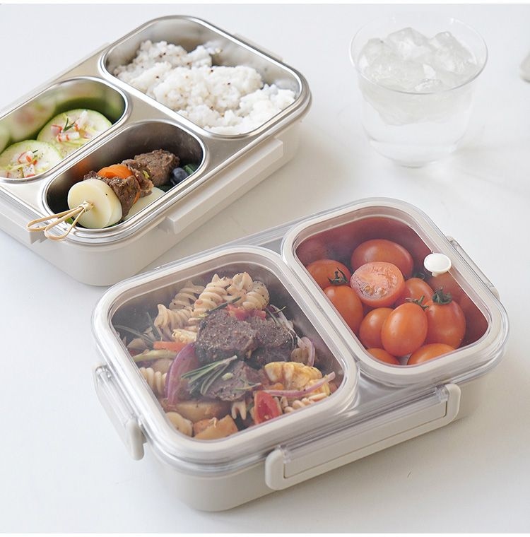 TEMU 1-4개 스테인리스 스틸 도시락 보온백 포함, 대용량 밀폐 벤토박스 - 학생 및 직장인을 위한 냉장고 보관용 전자레인지 안전 사각 식품 용기, 학교 가방|전자레인지|트라이탄밀폐용기