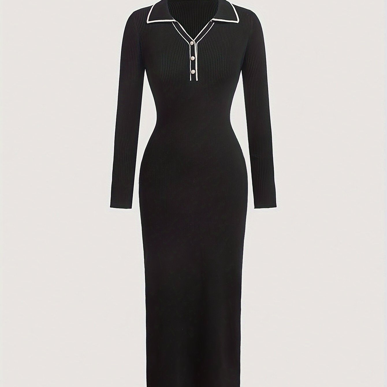 TEMU 대비 트림 V 넥 드레스, 봄 & 가을 우아한 긴 소매 드레스, 여성 의류