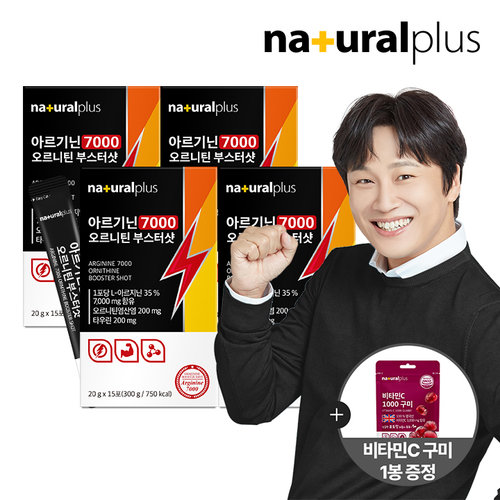 내츄럴플러스 아르기닌 7000 오르니틴 부스터샷 15포 4박스+비타민C 구미 1봉