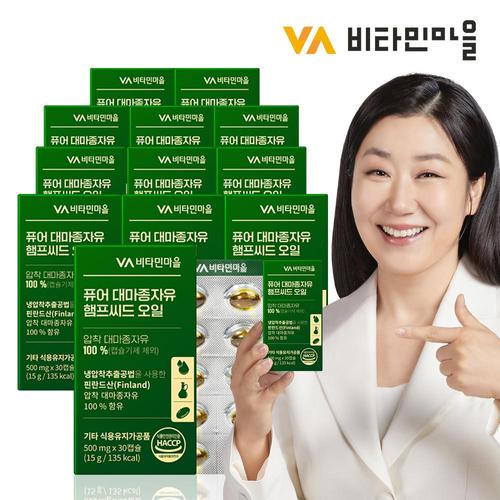 비타민마을 핀란드산 퓨어 냉압착 대마종자유 햄프씨드 오일 30캡슐 x 12박스 (총12개월분)