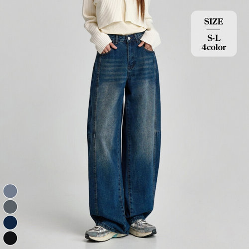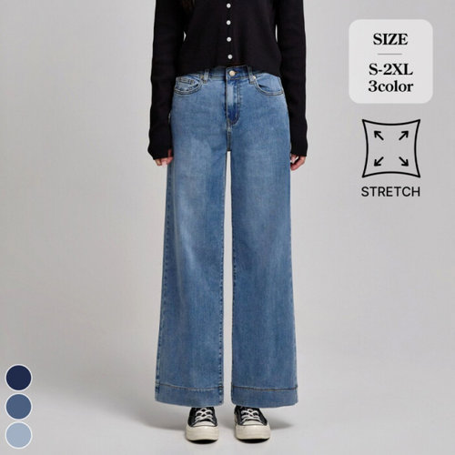 여성 와이드핏 난스판 반밴딩 통 청바지 3단기장 (키별선택) 5컬러 5사이즈