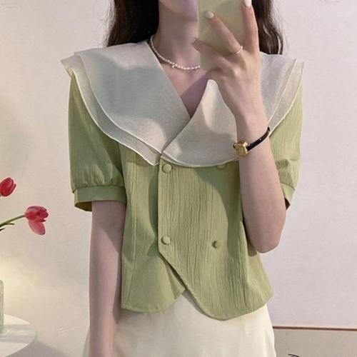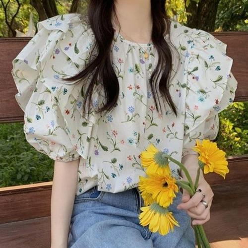 [오노마] ONM 화이트 프릴 이중소매 여성 반팔 블라우스 여름 코튼 (S10375599)