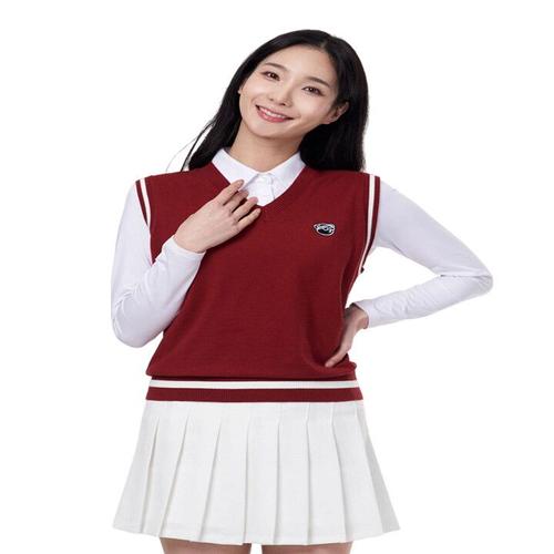 이지바이 스윗필드 봄 가을 여성 사이드 로고 자가드 간절기 골프 니트 조끼(W5WV21)