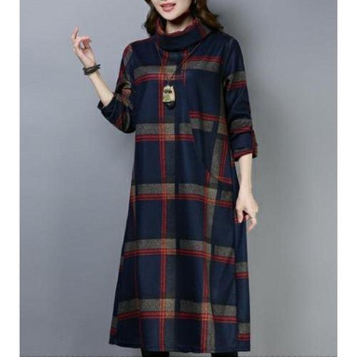 [엄지척]여성 겨울 간절기 터틀넥 기모 큰 체크 이지 원피스_19870166_667501