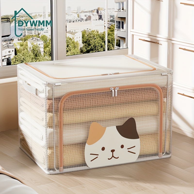 TEMU 1pc 24L/66L PVC 전 투명 저장 상자, 초고강도, 공간 절약, 쌓을 수 있고 접을 수 있음, 옷장 정리하기 쉽습니다 - 옷장, 침대 밑 보관함, 침대 밑 보관함에 이상적인 선택