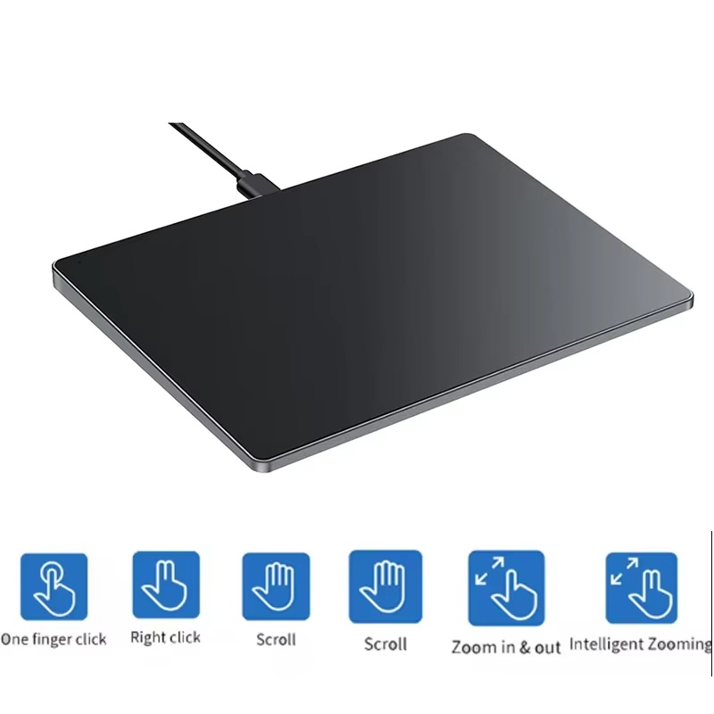 TEMU 업그레이드된 유선 트랙패드 메탈릭 스무스 글라스 표면 멀티터치 알루미늄 슬림 터치패드 USB/타입C 고정밀 터치패드