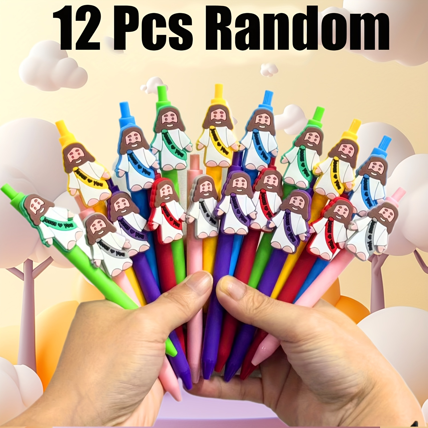 TEMU 6/12/18개 기독교 펜 선물 세트, 부활절 신앙 선물 상자, 따뜻한 예수 모습이 담긴 종교용 펜, 교회 상품, 교실 선물, 직장 사무실용, 남녀공용 선물용