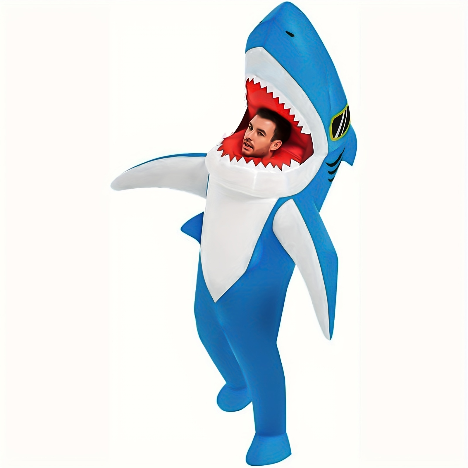 TEMU GARINOM 성인용 전신 팽창식 상어 코스튬 - 귀여운 만화 스타일, 사실적인 상어 머리 장식, 생생한 파란색 & 흰색 디자인, 튼튼한 소재, 할로윈, 파티 및 테마 이벤트에 적합, 웃긴 코스튬, 상어 파티 장식