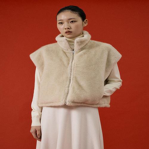 [숲]SOUP 밑단 스트링 하이넥 짚업 인조퍼 베스트()_K SBADB80