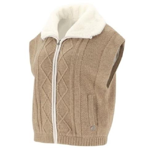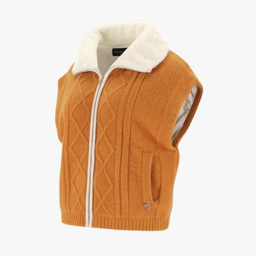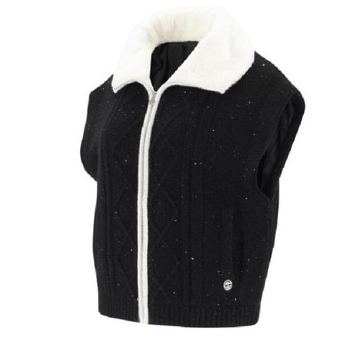 [엘르골프]여성 겨울 인조퍼 배색 풀오픈 니트 베스트 6K83101_YS