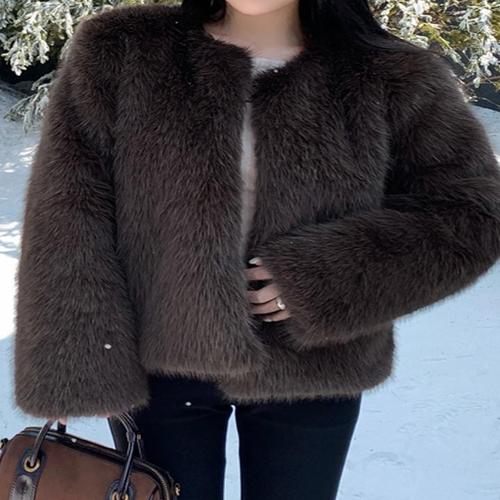 이지웨어 심플 여성용 인조 퍼 이지 숏핏재킷
