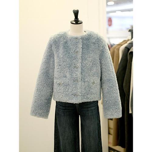 세미꾸띄르 라운드넥 인조 퍼 트림 버튼 재킷 S5WT20 T561