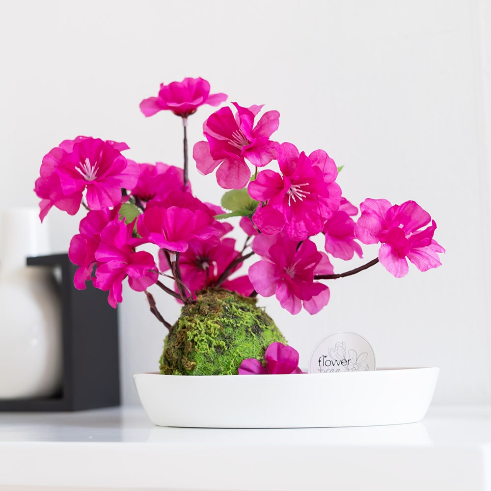 진달래 조화 화분 철쭉 납작 23x21cm 인테리어 봄 꽃 테이블 장식