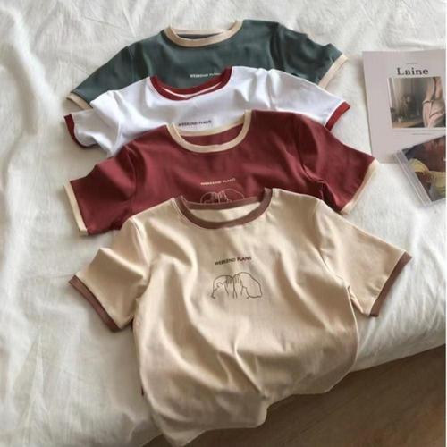 배색라인 반팔티셔츠 크롭티셔츠 일러스트 프린팅 WFKPDFS