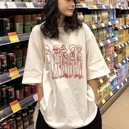 [엄지척]힙한 여름 여성 피플 일러스트 루즈 반팔 박스 티셔츠_19555087_667501