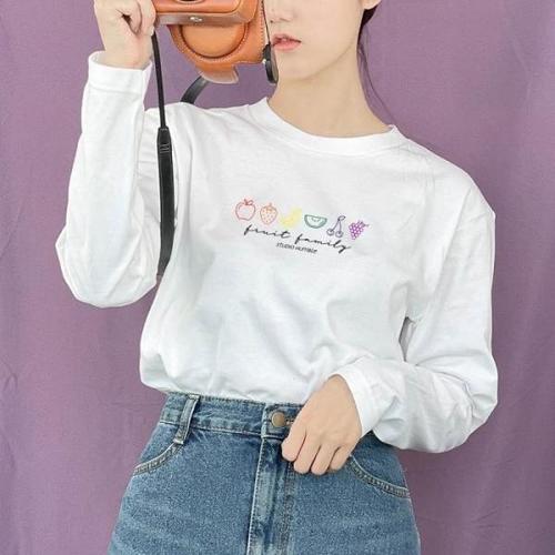 [험블스튜디오][험블스튜디오] 과일세트 일러스트 레터링 루즈핏 긴팔티 (8036767)