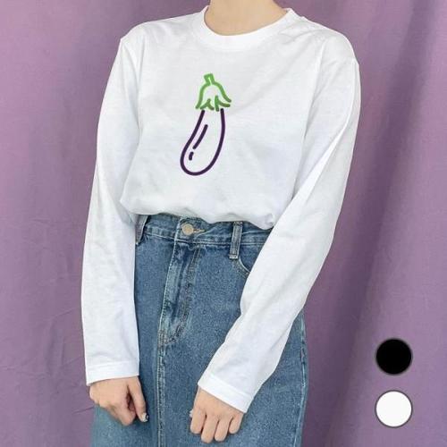 [험블스튜디오][험블스튜디오] 가지 일러스트 프린팅 레이어드 긴팔티셔츠 (8033702)