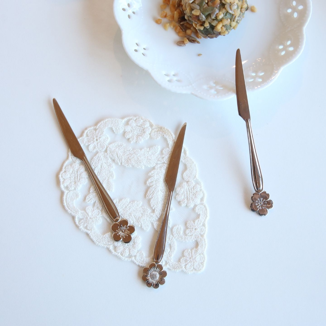 일본 스테인리스 디저트 커트러리 플라워 티나이프 잼나이프 -3type
