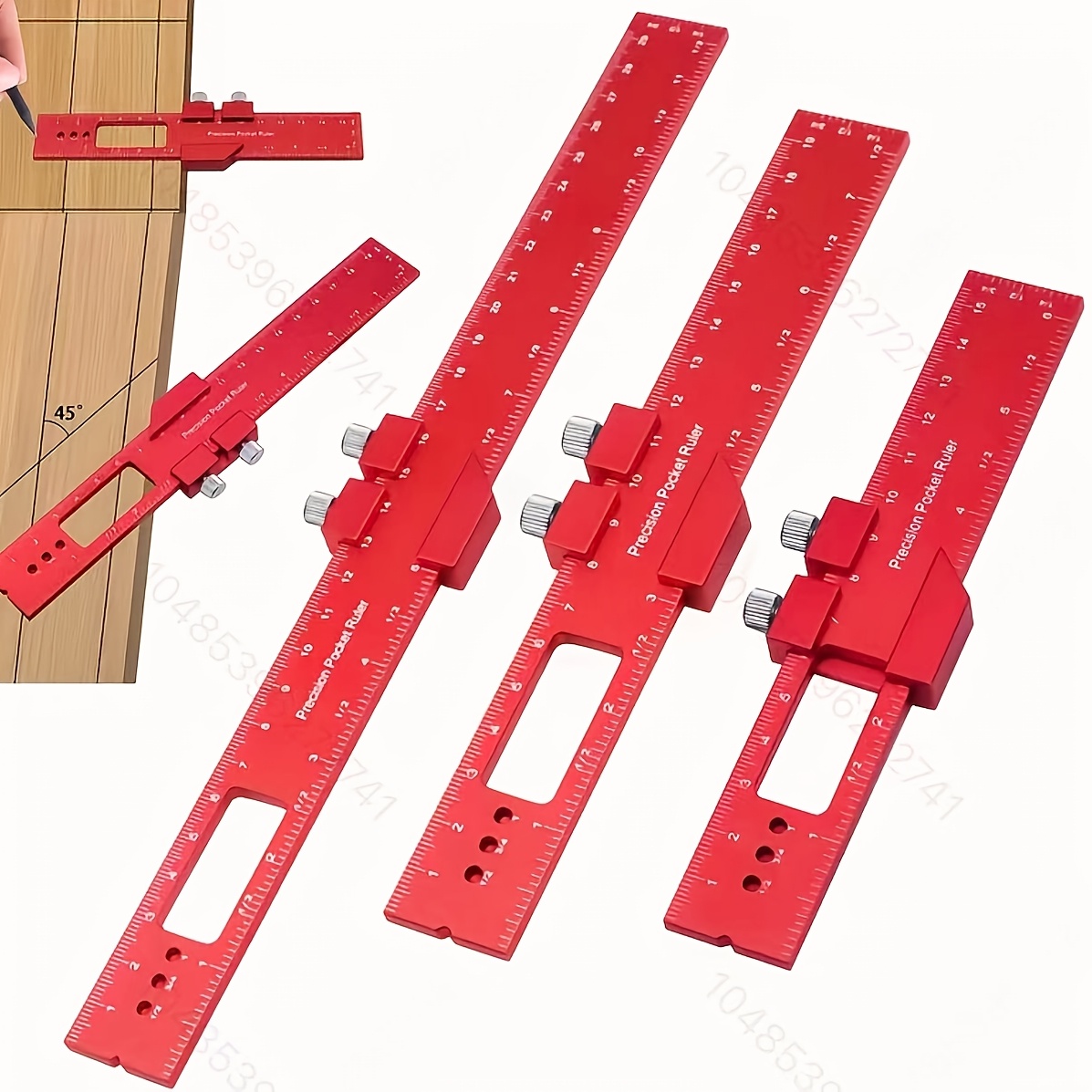 TEMU 1/3 세트 목공 자, 정밀 알루미늄 포켓 자, 6/8/12인치 (약 1.6 센티미터) 표시, T자형 자 (스톱 블록 포함), 조절 가능한 자, 목공 및 엔지니어링에 적합