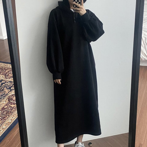[셀러허브_여성트랜드패션]빅사이즈 510 일자롱후드버튼원피스 DGBV460