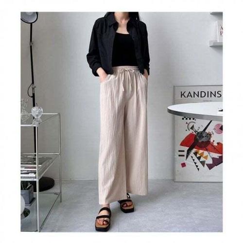 [셀럽하우스]린넨 CIXQ6265 캐주얼룩 일자 시원한 여자바지 밴딩 용 통바지