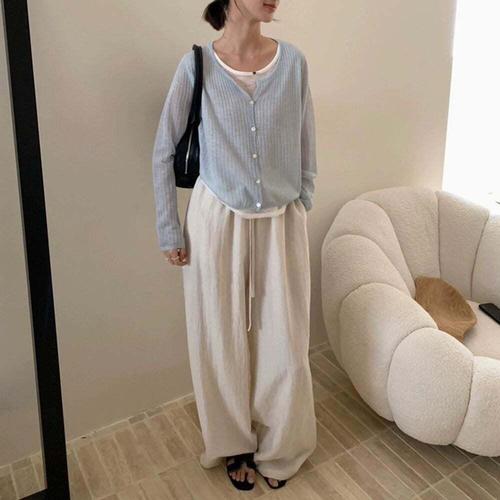 [셀럽하우스]베이직 NGWC8366 일자 소재감 허리밴딩 롱팬츠 하늘하늘한 린넨