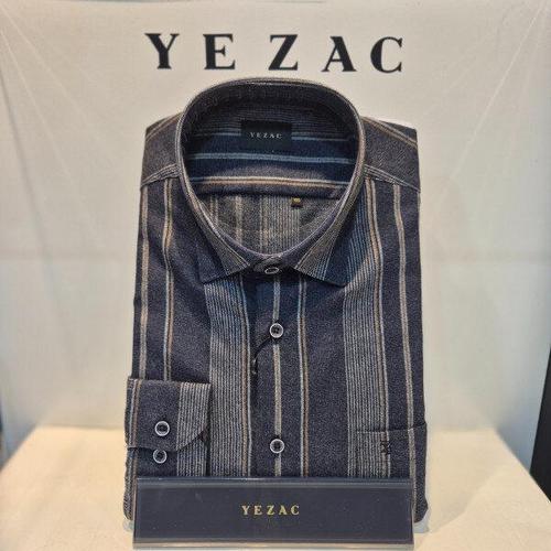 [예작]면 저지 멀티스트라이프 밑단일자 일반핏 기모셔츠(YJ2WUA790NY)_DG