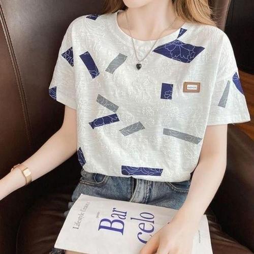 [셀러허브_여성트랜드패션]여성 루즈핏 티셔츠 다양한 입체 반팔 루즈핏 무늬 유닉 라운드 반팔 패턴