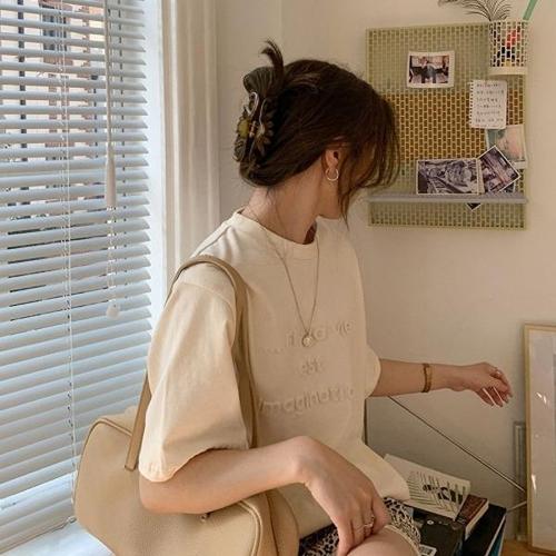[엄지척]여자 입체 패턴 레터링 라운드넥 루즈핏 반팔 티셔츠_19615119_667501