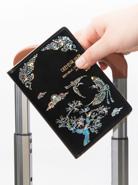 [한소품] 송학도 자개 여권케이스 RFID차단 여권지갑 3color