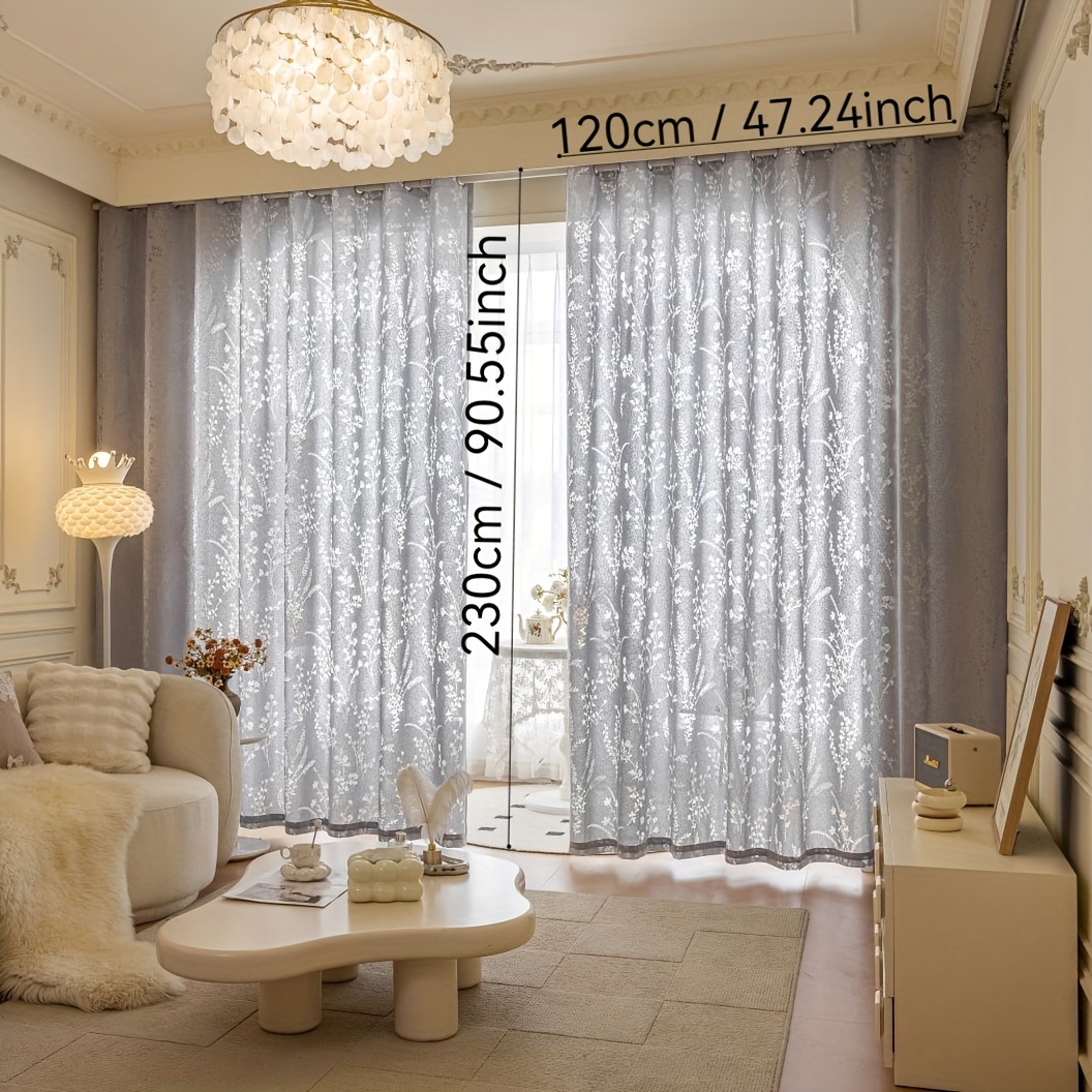 TEMU 2개 (목가적 꽃무늬 마감 모래 커튼) 고급 천공 마감 커튼은 거실, 발코니, 식당, 침실에 적합합니다