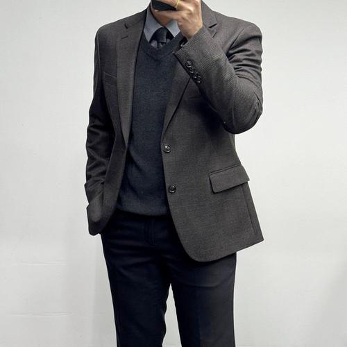 [바쏘옴므]잔체크 슬림핏 스판 정장 콤비 자켓 WSY4-JQ27-ABR