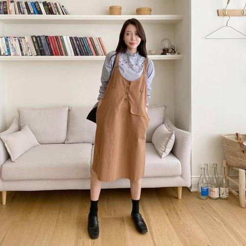 블라우스 리치아 온나핏 트위드 자수 멜빵 셔츠 WFKOIOS