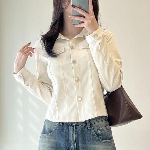 WANGBAIWAN 여성 카라넥 긴팔 순면 셔츠 도트 패턴 루즈핏 남방 데일리룩 S22211