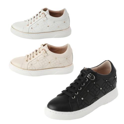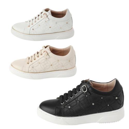엘칸토 HC14 여성 쿠션굳 소가죽 히든 키높이 자수포인트 스니커즈 5cm LCW