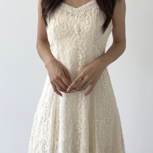 [옷자락] 여성 자수 트임 뒷단추 아이보리 나시 롱 원피스